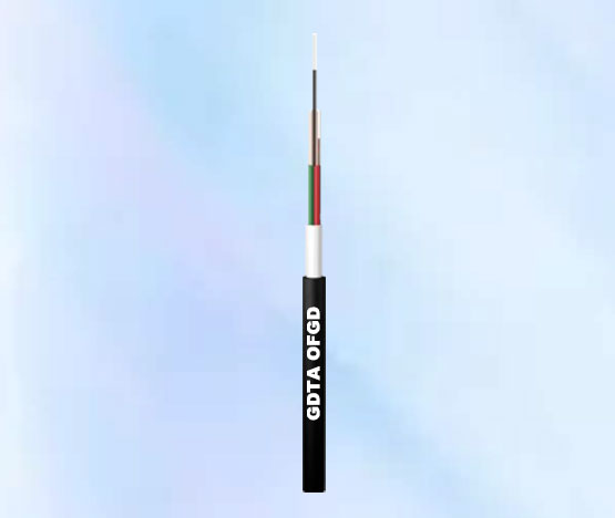 GDTA 型光電混合纜的結構是將單?;蚨嗄9饫w裝入由高模量的聚酯材料做成的松套管中,套管內填充防水化合物。纜芯的中心是一根金屬加強芯,對于某些芯數的光纜來說, 金屬加強芯外還需擠上一層聚乙烯。松套管和所需規格的絕緣銅導線圍繞中心加強芯絞 合成緊湊的圓形纜芯,纜芯內的縫隙充以阻水填充物。涂塑鋁帶(APL)縱包后擠制聚乙烯護套成纜。