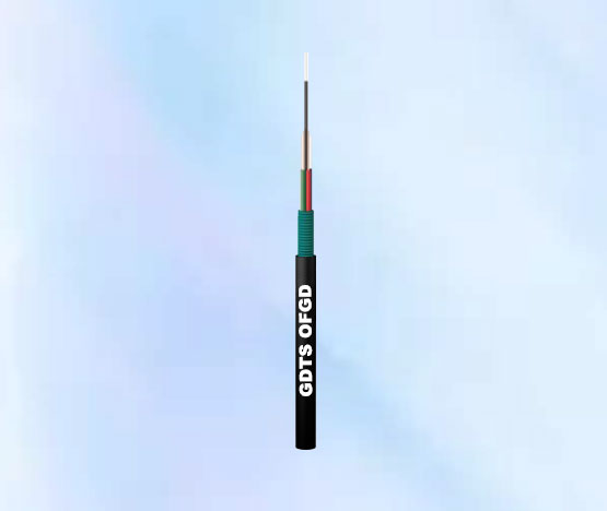 GDTS 型光電混合纜的結(jié)構(gòu)是將單模或多模光纖裝入由高模量的聚酯材料做成的松套管中,套管內(nèi)填充防水化合物。纜芯的中心是一根金屬加強芯,對于某些芯數(shù)的光纜來說,金屬加強芯外還需擠上一層聚乙烯。松套管和所需規(guī)格的絕緣銅導線圍繞中心加強芯絞 合成緊湊的圓形纜芯,纜芯內(nèi)的縫隙充以阻水填充物。雙面鍍鉻涂塑鋼帶(PSP)軋紋 縱包后擠制聚乙烯護套成纜。